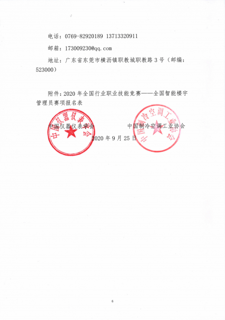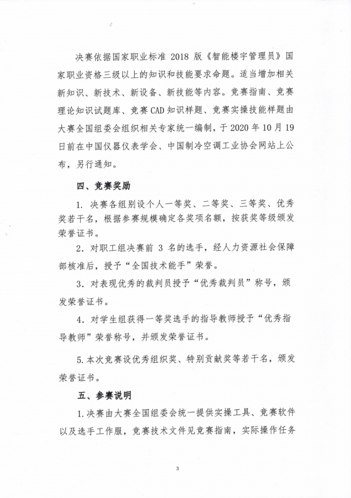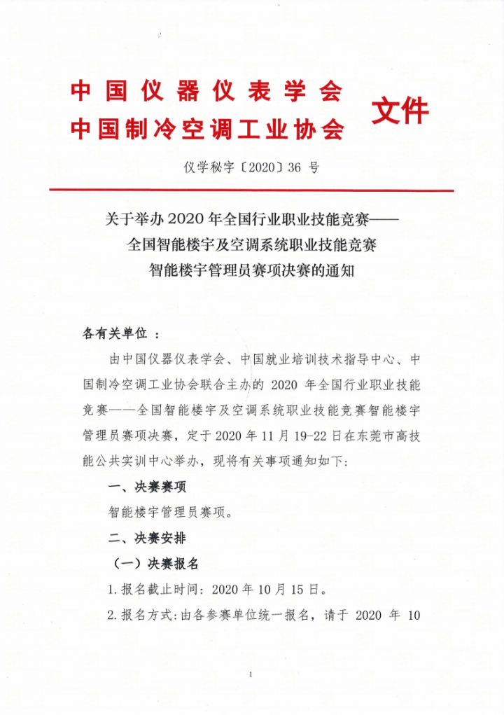 关于举办2020年全国行业职业技能竞赛——全国智能楼宇及空调系统职业技能竞赛智能楼宇管理员赛项决赛的通知